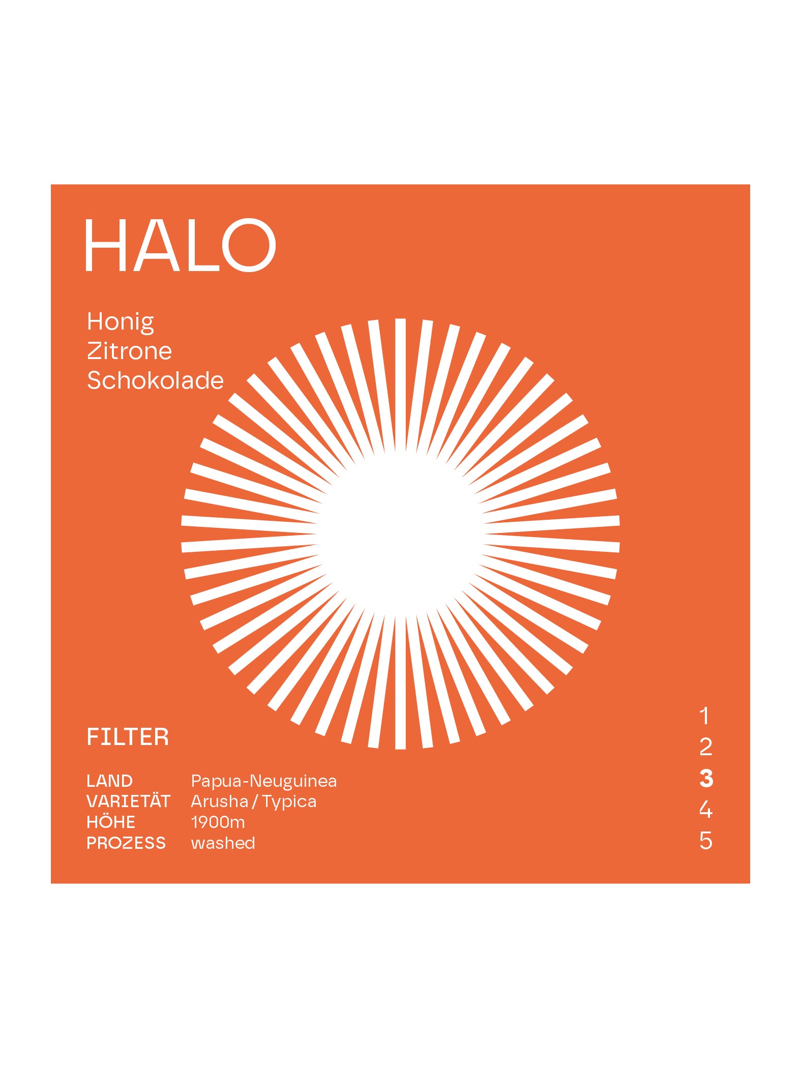 Halo ist eine Filterröstung aus Papua-Neuguinea, gewachsen auf beeindruckenden 1900 m und im Washed-Verfahren aufbereitet. Sein Profil schmeckt nach Honig, Zitrone und Schokolade, ist ausgewogen und angenehm frisch.