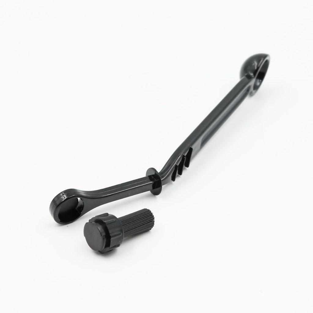 Sie ist so konzipiert, dass kein heißes Wasser mit der Hand in Berührung kommt. Die Basis der Bürste hat einen eingebauten Dosierlöffel, der eine genaue und gleichmäßige Dosierung des Rückspülpulvers ermöglicht.